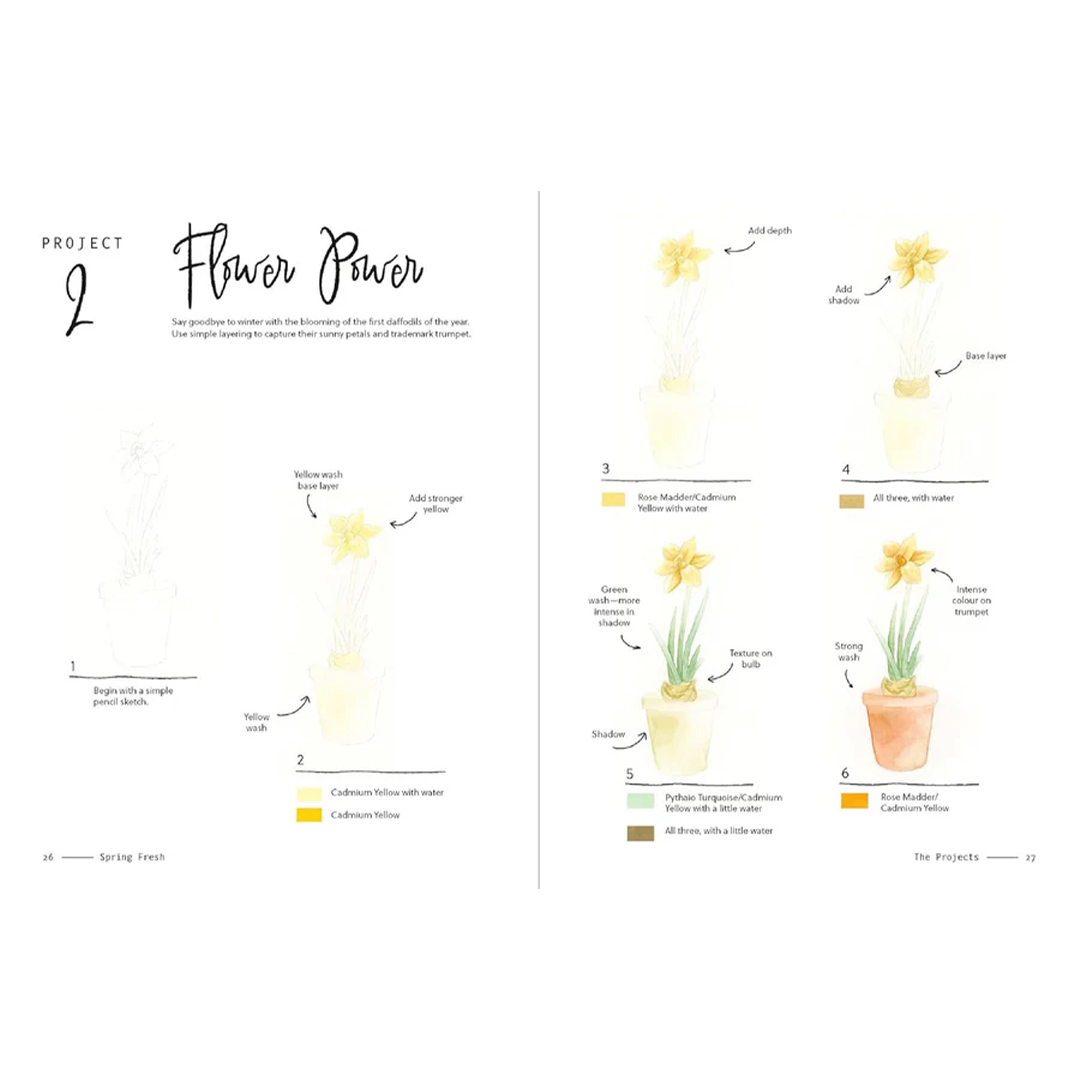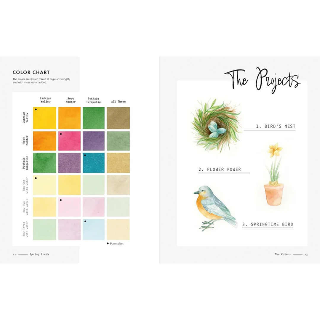 Kunstneren Katie Putt guider gennem enkle trin-for-trin-instruktioner til 30 små mesterværker. Hvert af bogens 10 kapitler er baseret på en unik trefarvepalette, fra klare juvelfarver til rolige, skandinavisk inspirerede toner. Det eneste, der kræves for at komme i gang, er tre “rene” farver. Med disse lærer man at blande en overraskende bred vifte af nuancer – alle de farver, der er nødvendige for at gennemføre de tre letforståelige akvarelprojekter i hvert kapitel, som spænder fra dyr, blomster og planter til bagværk og meget mere.