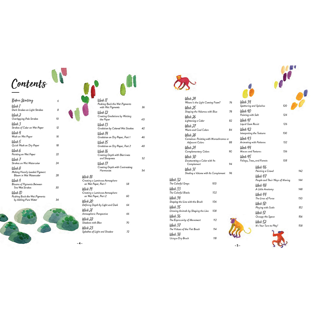 Kunstneren og tekstildesigneren Lou Ripoll tager begyndere med på en fortryllende akvarelrejse med 52 projekter for hele året, hvor bløde laseringer og levende farver vækkes til live.
