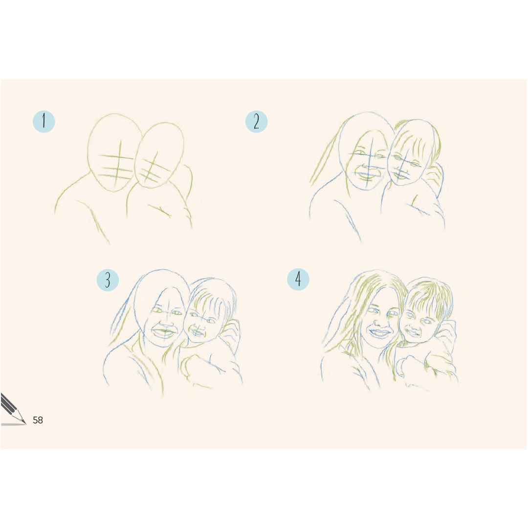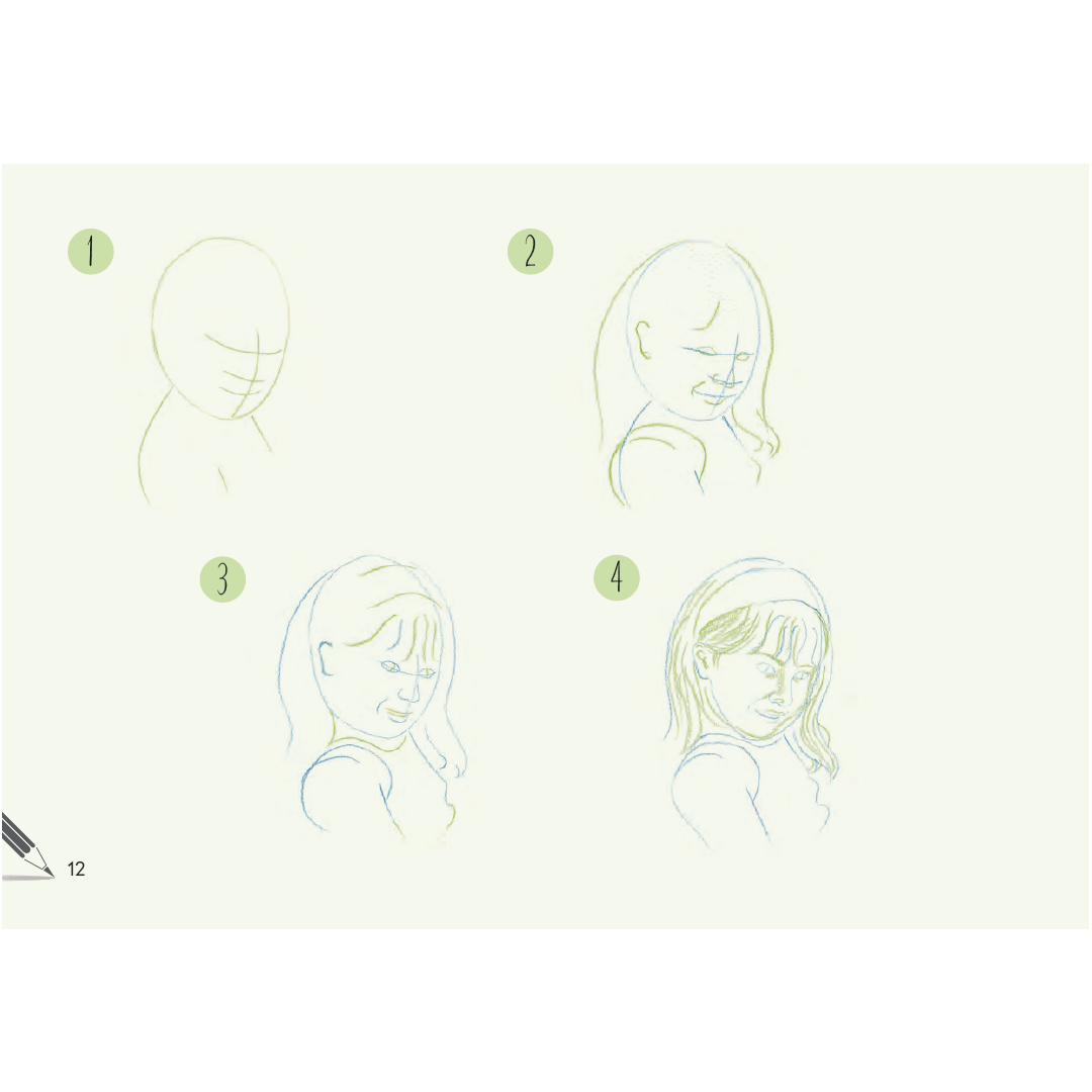 Med et bredt udvalg af hoved- og skulderportrætter indeholder denne bog en række alsidige og dynamiske ansigter og frisurer, som vil inspirere og opmuntre dig til at anvende dine nye færdigheder på portrætter af venner og familie.