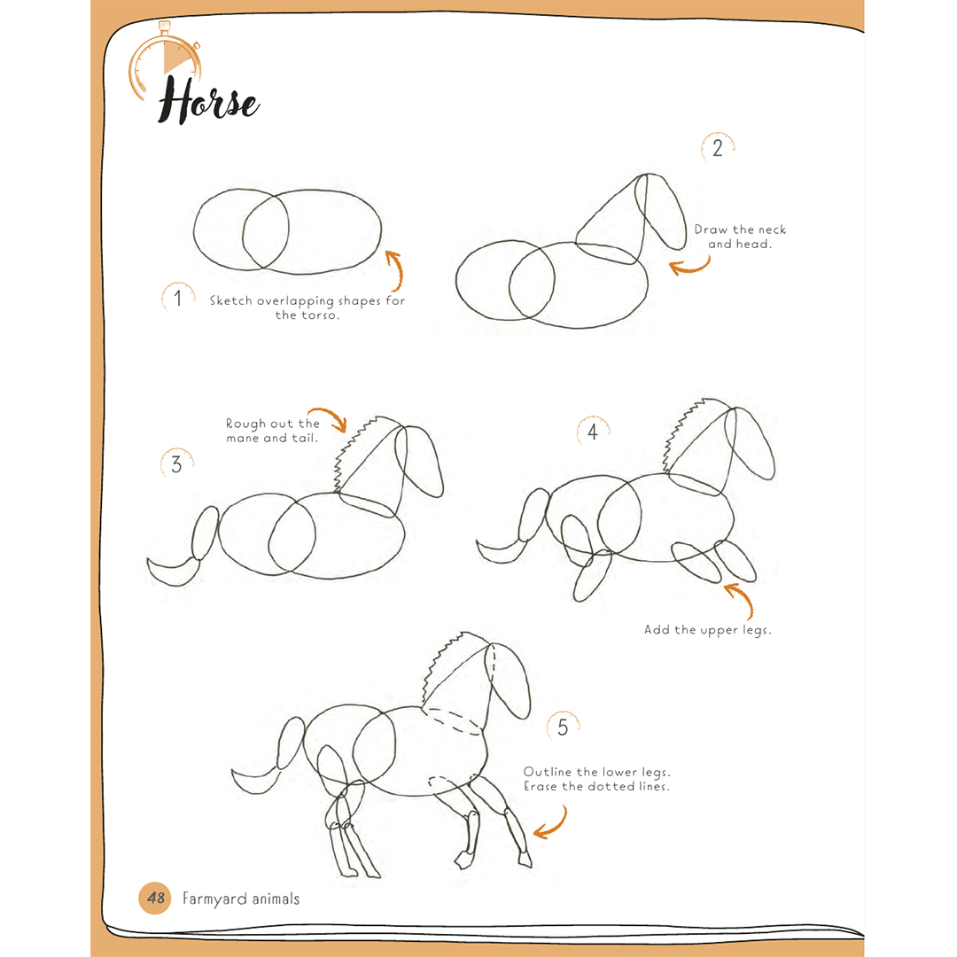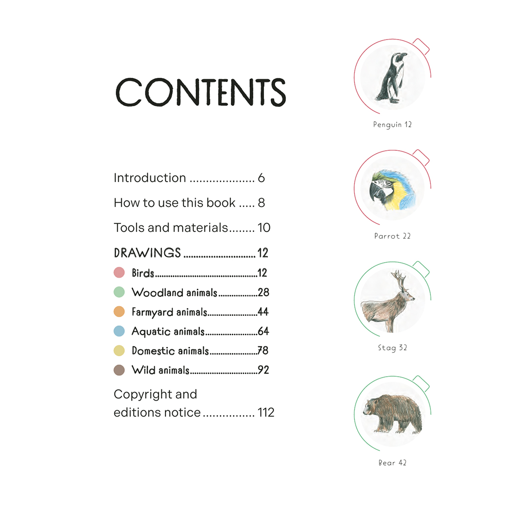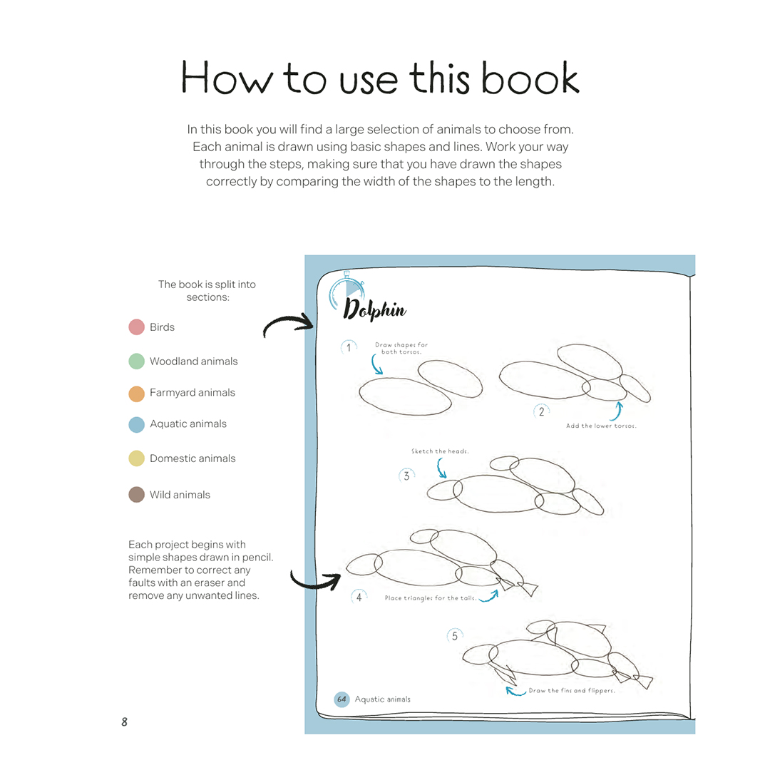Tegn alle slags væsner, store som små, herunder skov-, gård-, vandlevende, tamme og vilde dyr ved hjælp af denne imponerende enkle og letforståelige bog.