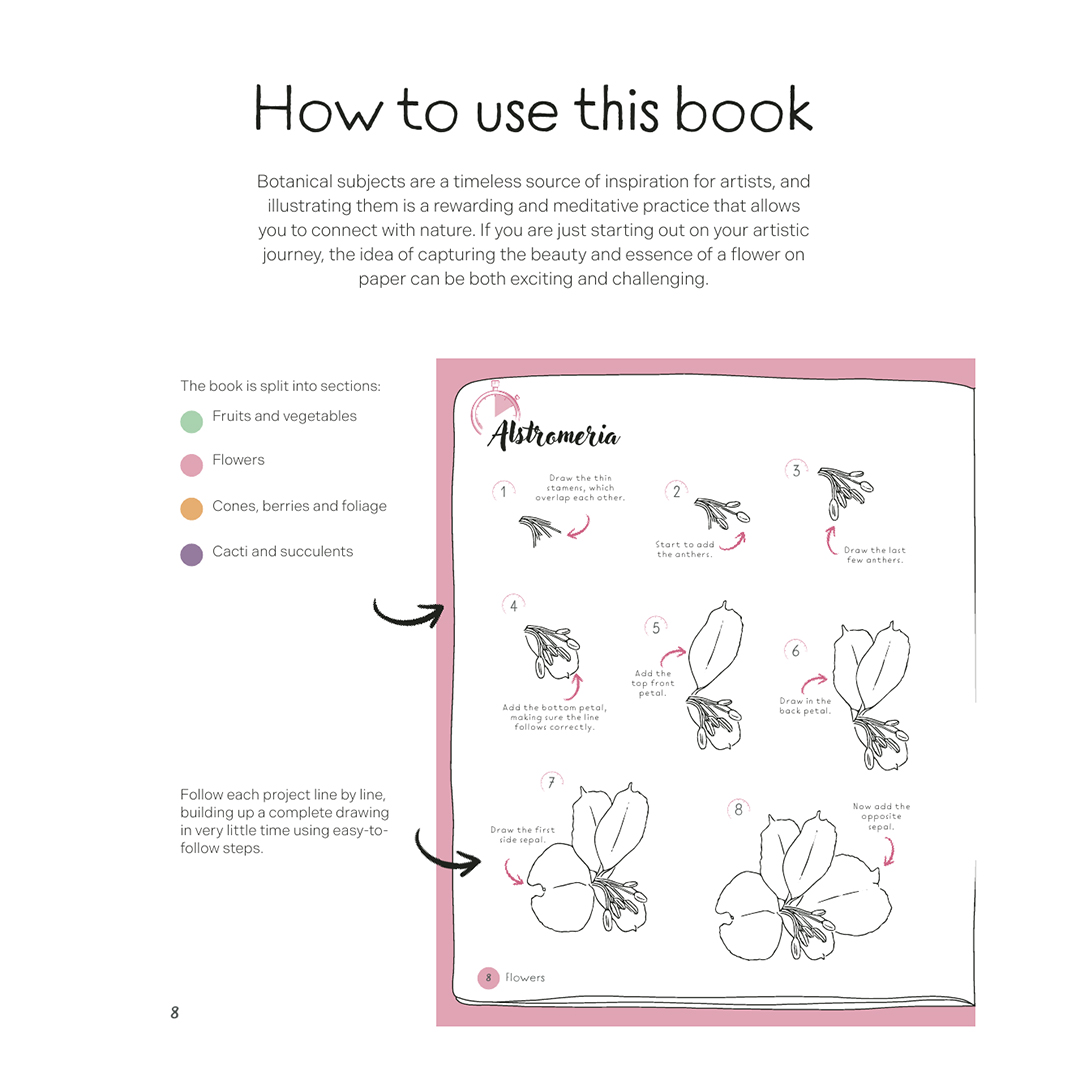 Denne bog er perfekt til begyndere, der aldrig har tegnet før og ønsker en nem guide til at tegne og gengive deres yndlingsblomster og mere; den er også en oplagt inspirationskilde for mere erfarne illustratorer, der søger skitseidéer og vil observere og gengive botanisk korrekte strukturer.