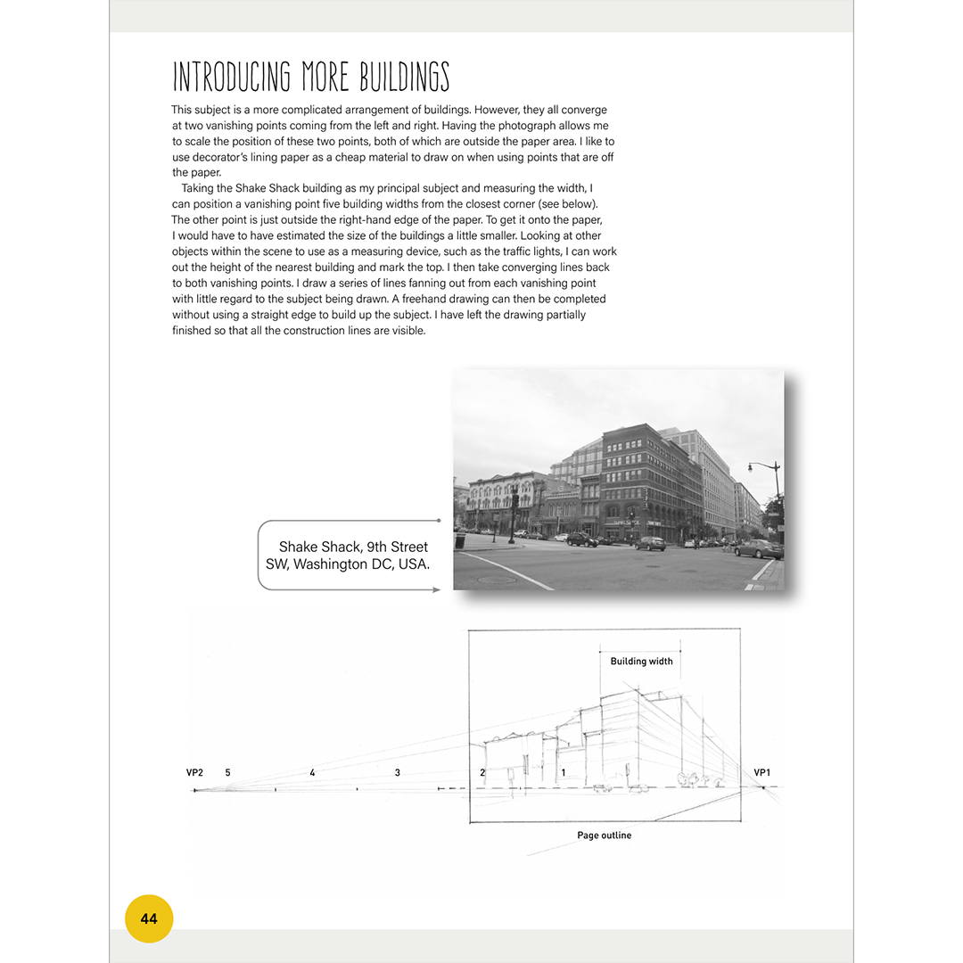 Alle aspekter af perspektiv – fra nulpunkts- til flerpunktsperspektiv – forklares på en enkel og letforståelig måde. Ud over landskaber og bygninger lærer du, hvordan du anvender perspektiv på mennesker, dyr, både, reflekser og meget mere.