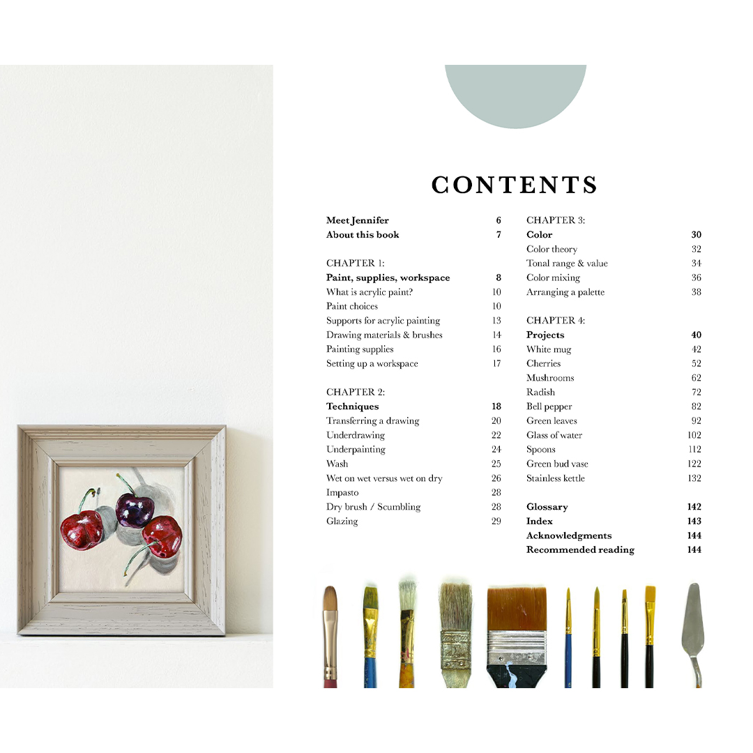 Begynderguider til små stilleben af Jennifer Funnell. Skab ti fængende små kunstværker med denne unikke introduktion til akrylmaling.