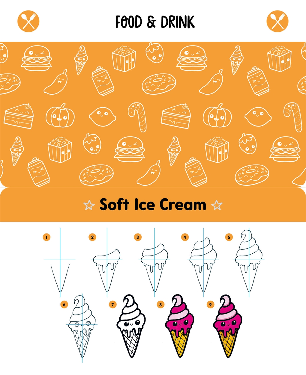 Lær hemmelighederne bag Kawaii‑tegning, fra at få de rigtige proportioner til at skabe personlighed med forskellige ansigtsudtryk eller tilføje dybde med lag af farve. Følg derefter 52 trin‑for‑trin‑sekvenser, der viser dig, hvordan du bygger op en stor række forskellige karakterer – fra enkle former til flere detaljer og farver. Hver sekvens er helt visuel, uden tekstanvisninger at læse, så det er virkelig nemt at skabe dine egne Kawaii‑figurer. Alt du behøver er papir og nogle penne!