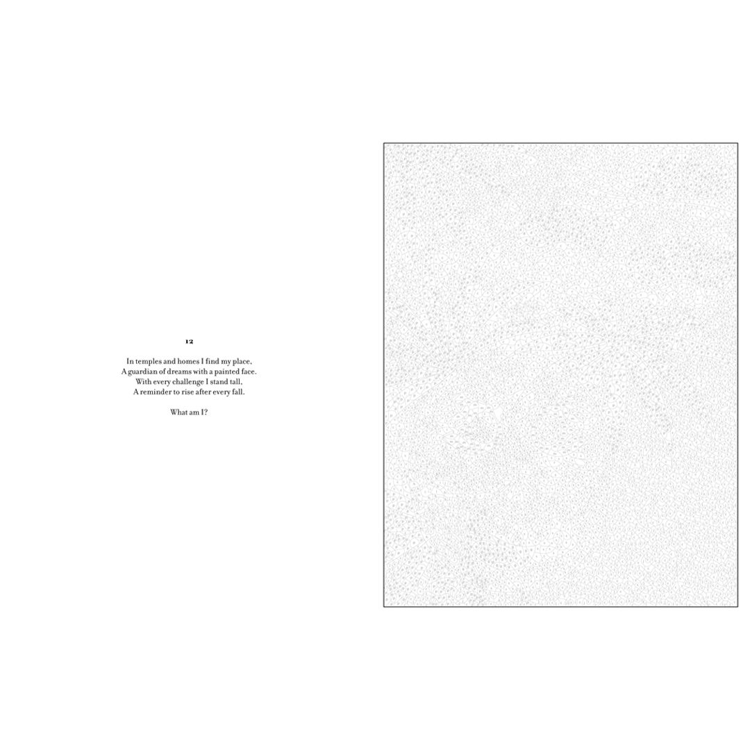 - For ekstra sjov indeholder hver illustration en gåde, du kan tænke over, mens du bringer billedet til live. Find svarene i både ord og billeder bagerst i bogen.