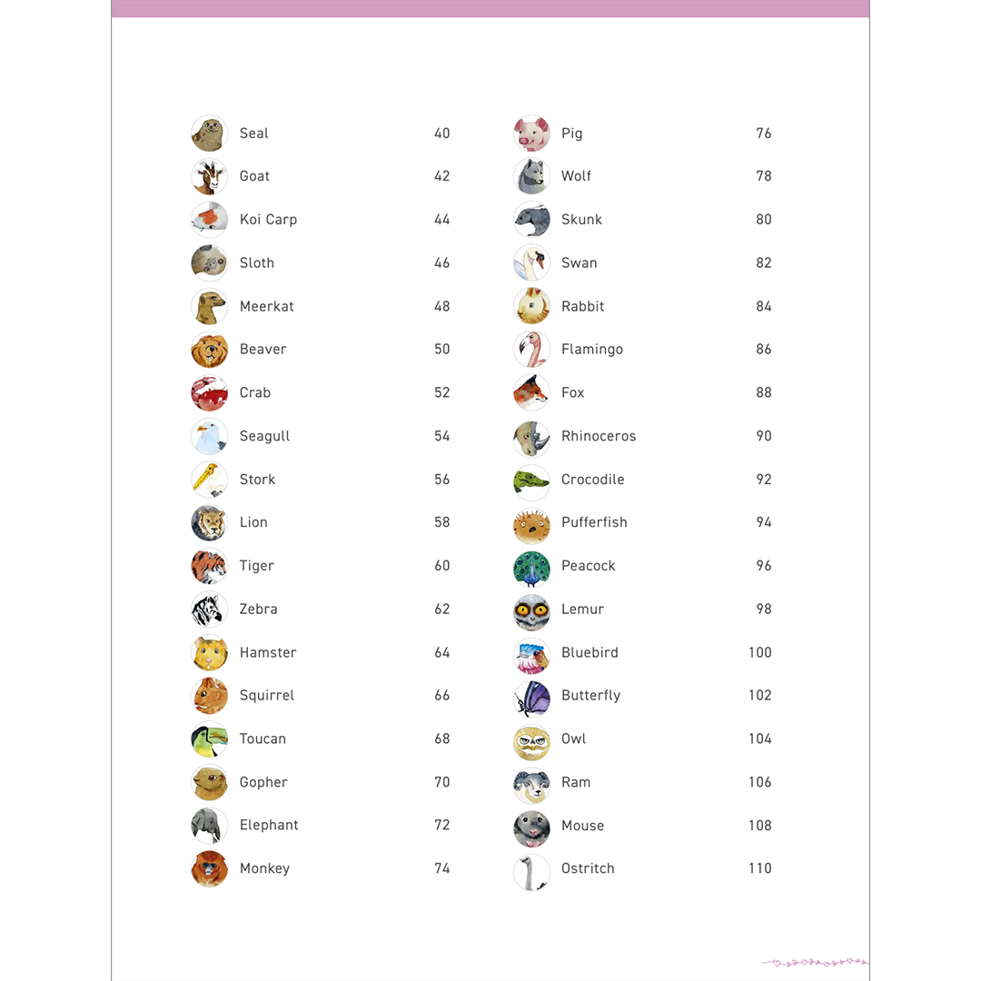 Bogen indeholder en kort liste over redskaber og materialer til at komme i gang samt en klar og informativ guide til de grundlæggende teknikker, der kræves for at male denne mangfoldige samling af dyr.
