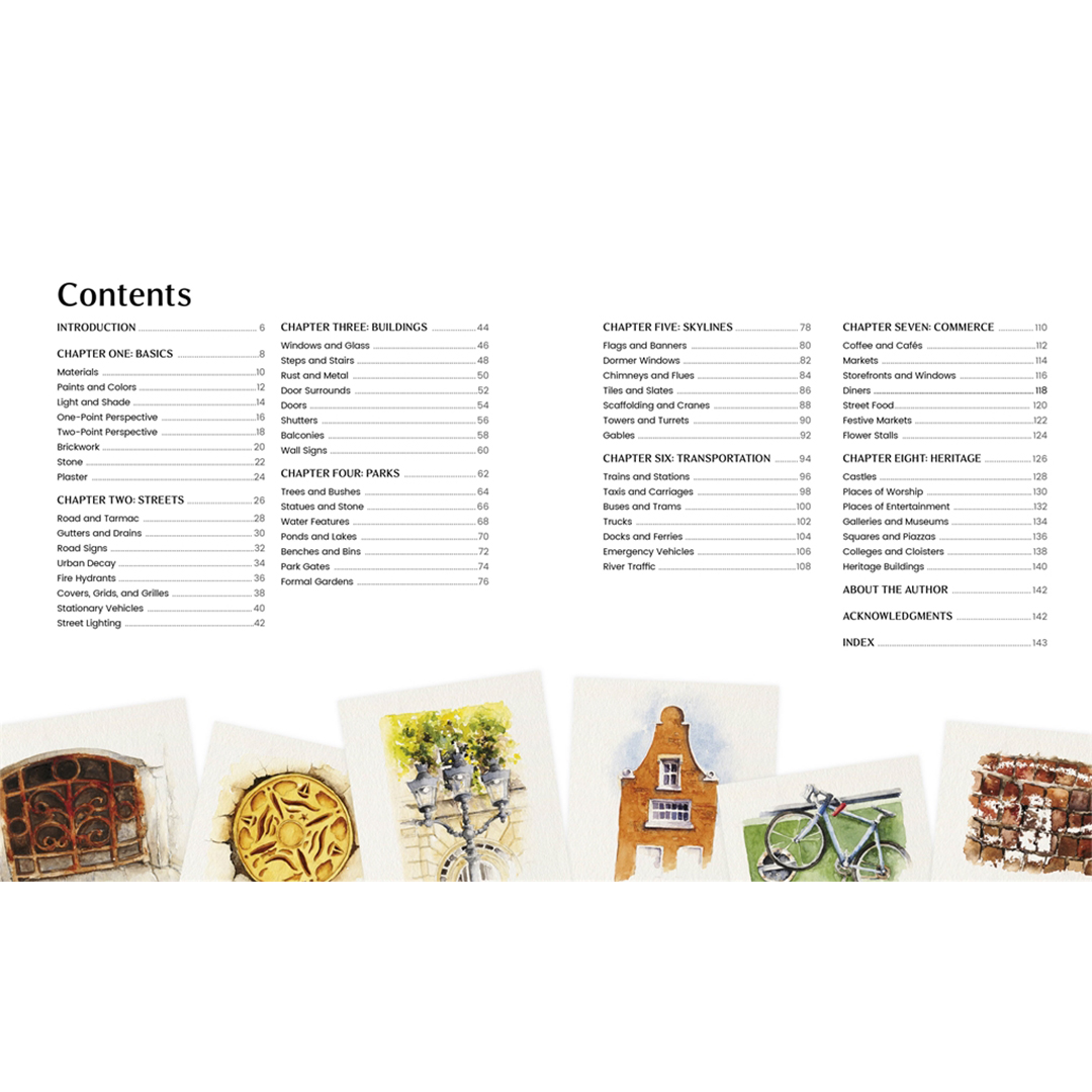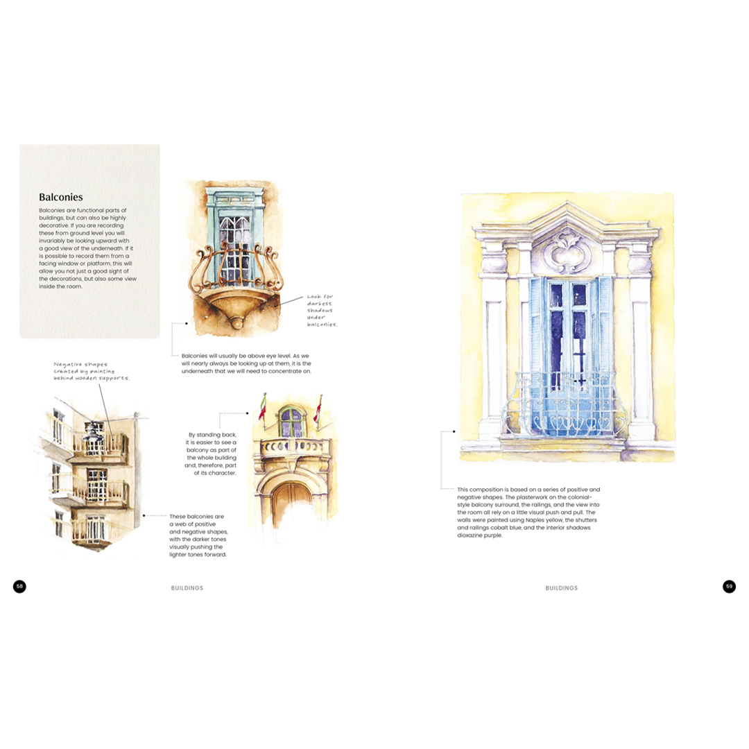 En fremragende ny håndbog med praktiske teknikker til akvarelkunstnere, der arbejder med urbane landskabsmotiver.