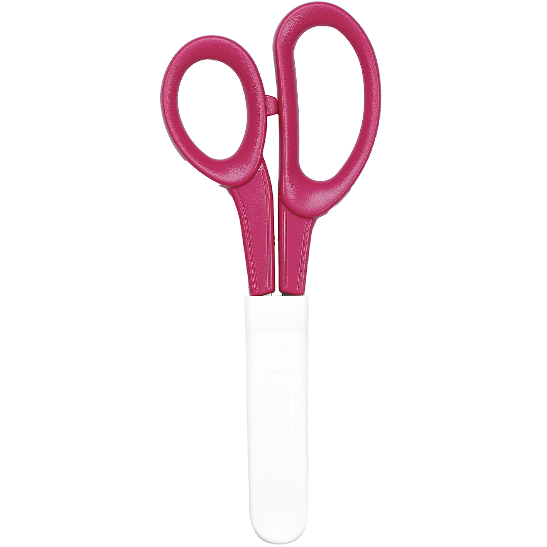 Børnesaks med femfingergreb, afrundede blade og medfølgende beskyttelseshætte. Et sikkert og godt valg for børn, der lærer at klippe.