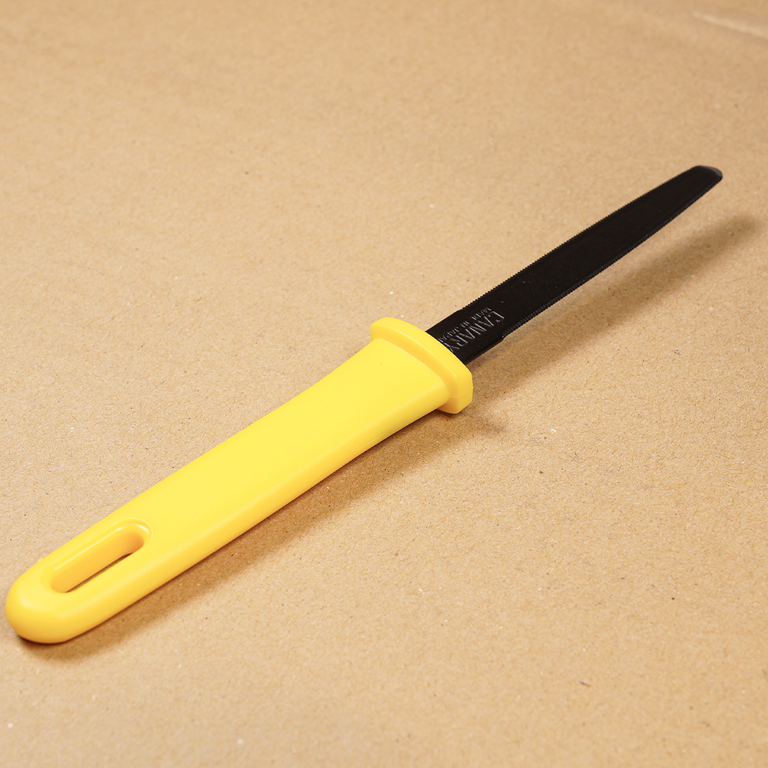 Papkniv med dobbeltandet non-stick blad, designet til at åbne emballage hurtigt og sikkert. Det perfekte værktøj til lager, logistik, butikker – kort sagt alle, der dagligt håndterer papkasser.