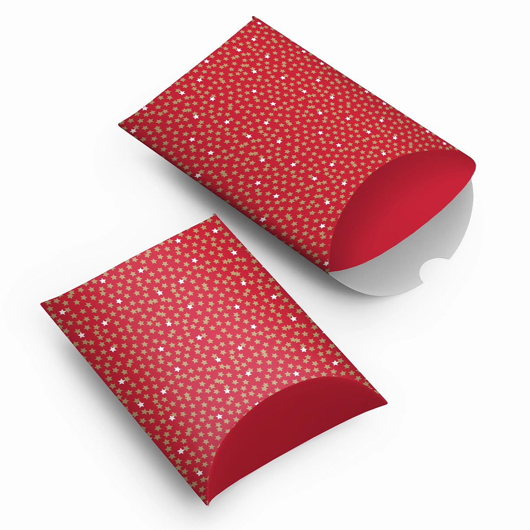 DESIGN: Små stjerner på rød baggrund, en gaveæske med glitrende mønstre, ideel til jul- eller fødselsdagsgaver.