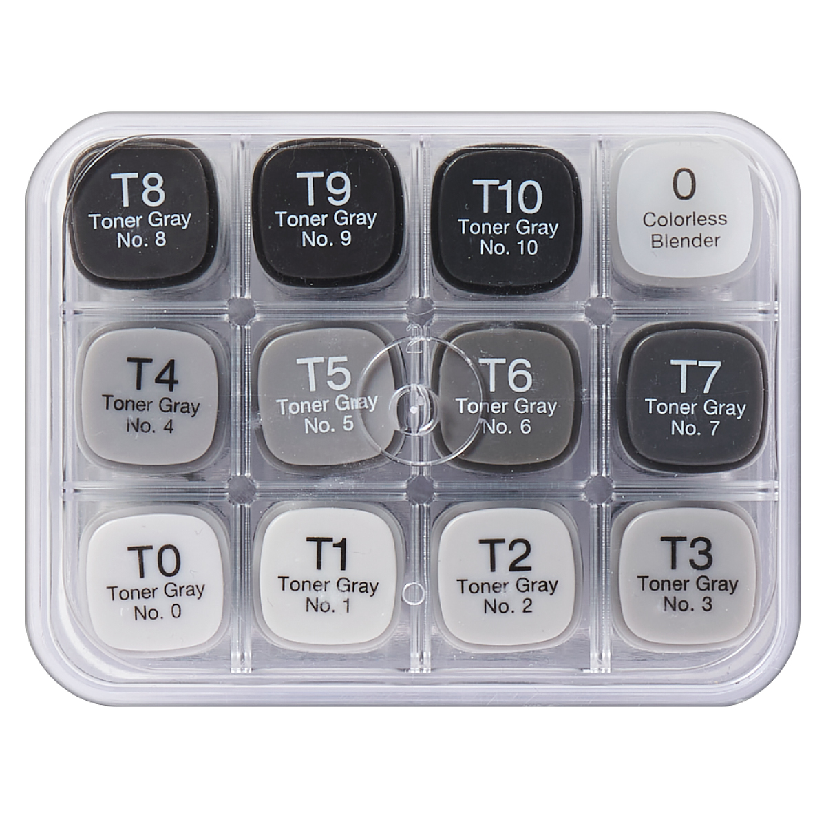Dette sæt indeholder 12 farver: T0, T1, T2, T3, T4, T5, T6, T7, T8, T9, T10, 0 Blender.