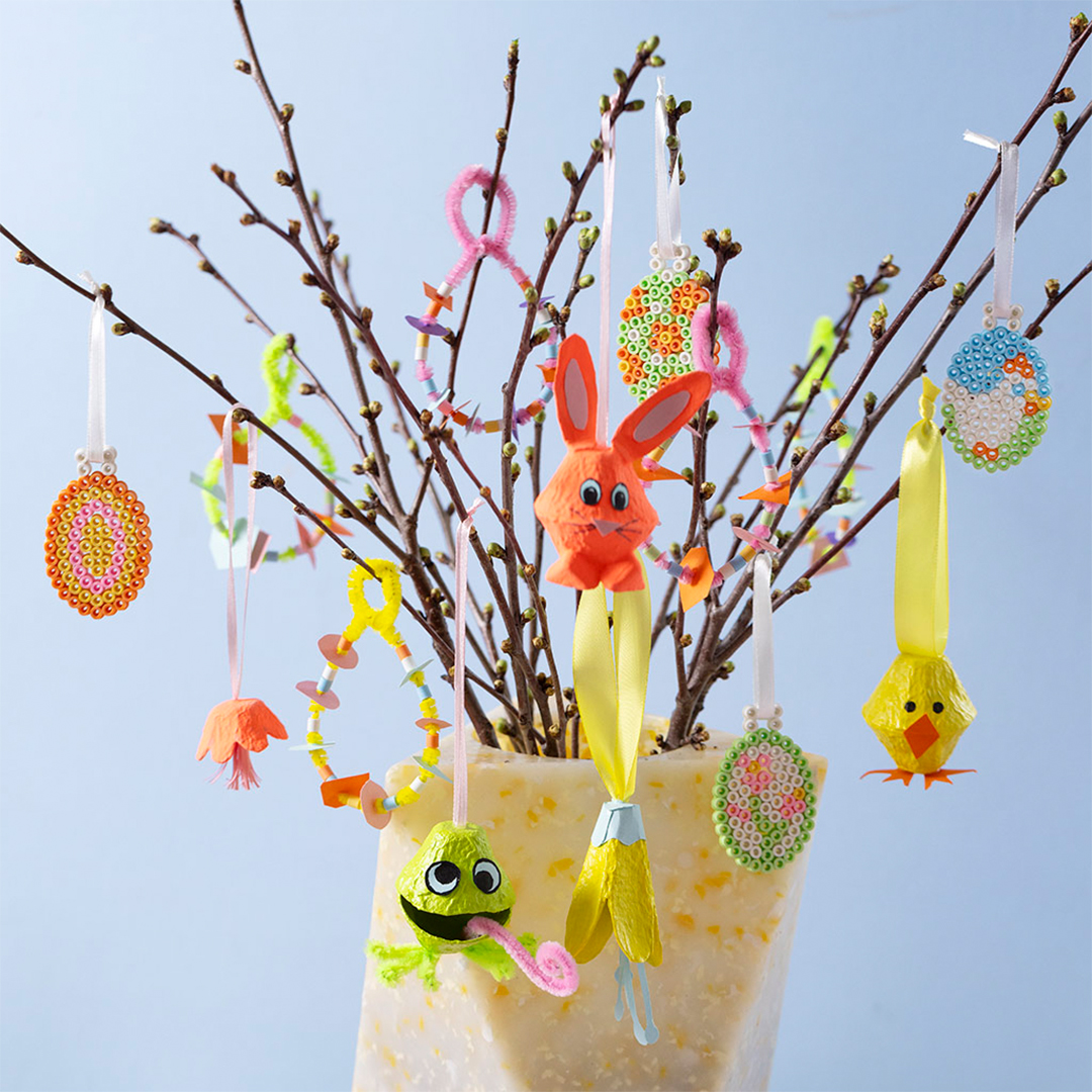 Med dette DIY-sæt kan du og familien lave smukke forårsdekorationer til grene og bord. Indeholder nok materiale til 10–12 personer. Perfekt til sjove familieaktiviteter eller fødselsdagsfester.
