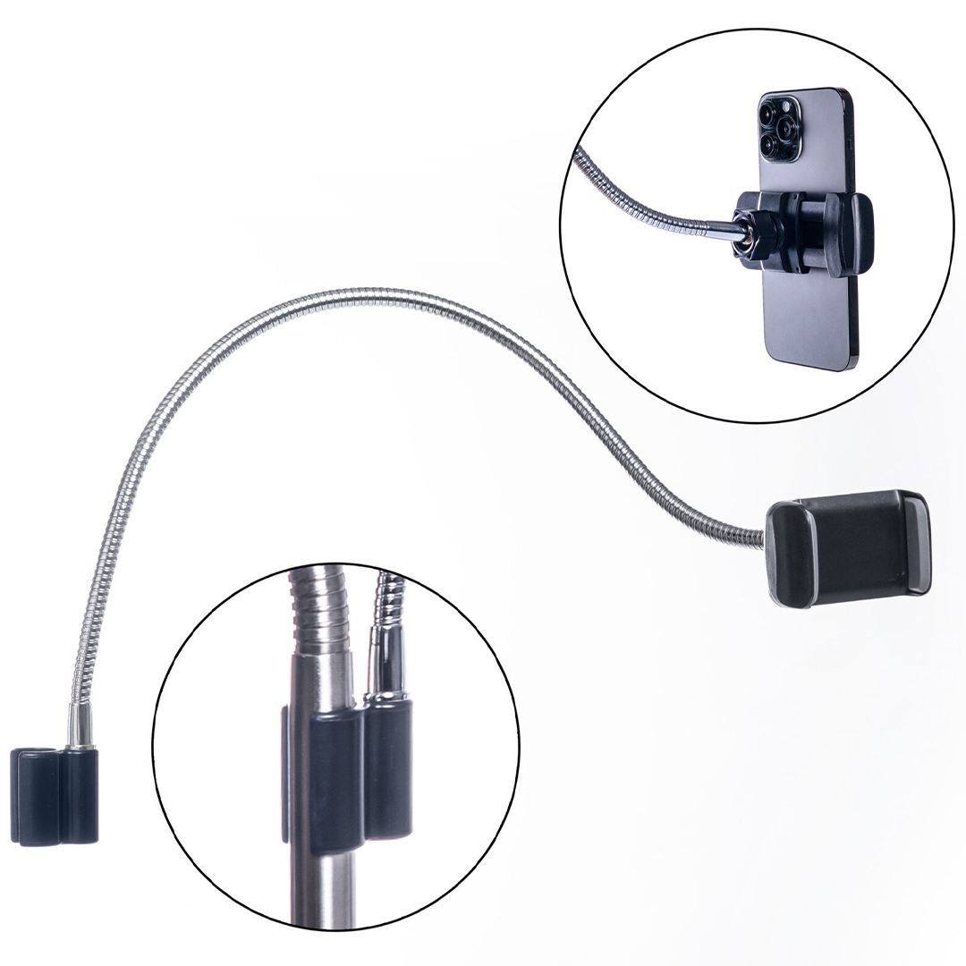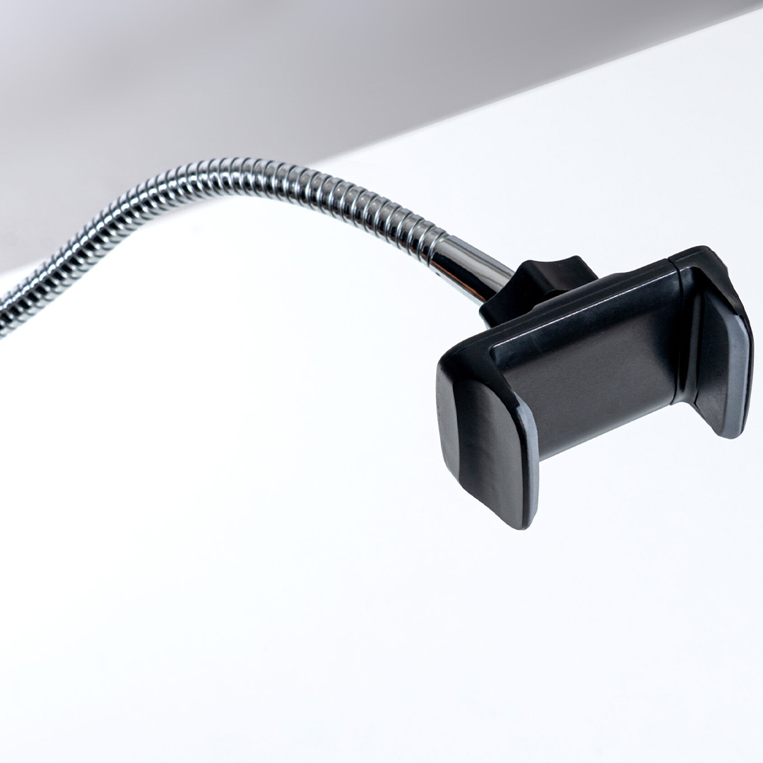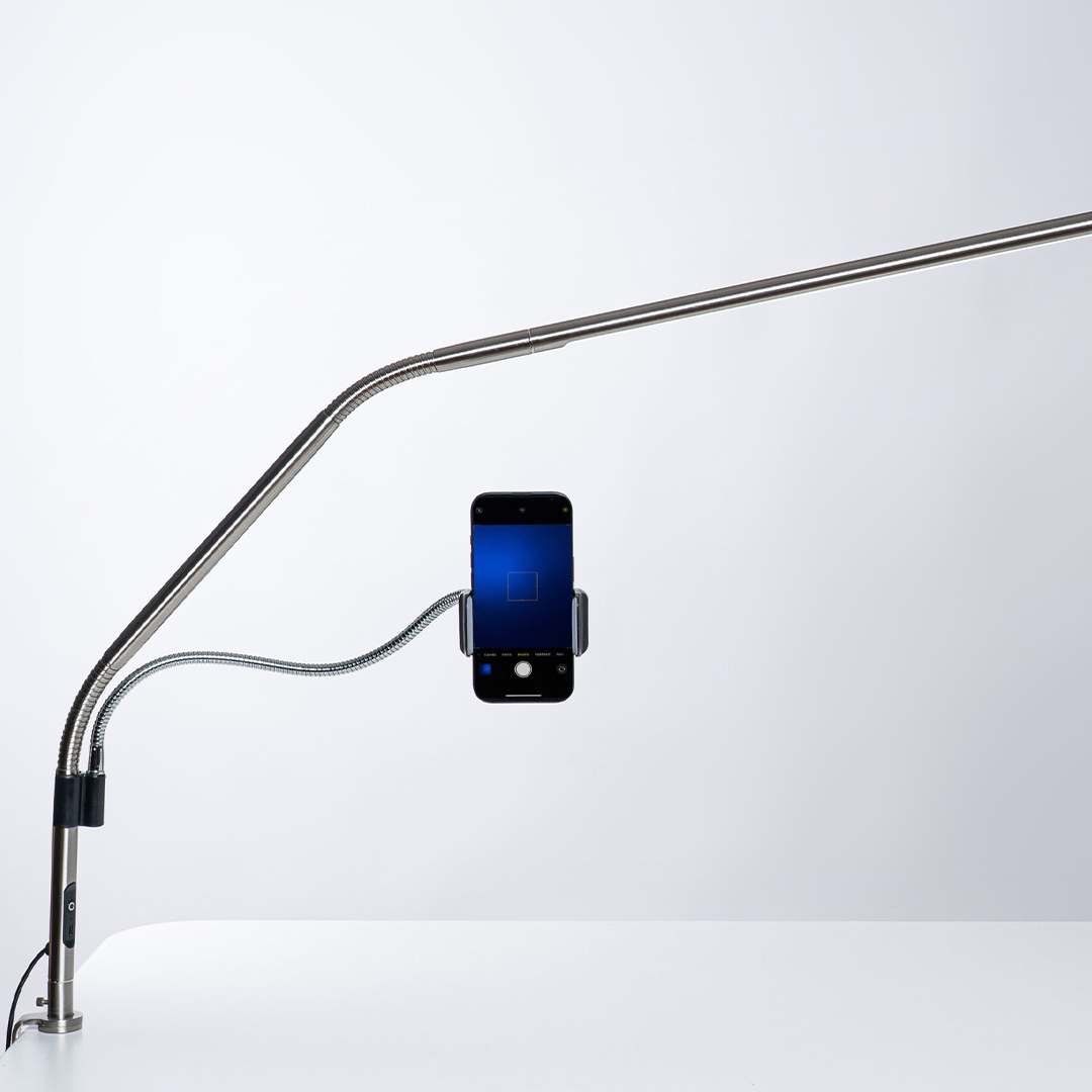 Den justerbare arm muliggør en nem og præcis placering af telefonen, hvilket gør det lettere at arbejde med små detaljer eller komplekse opgaver.