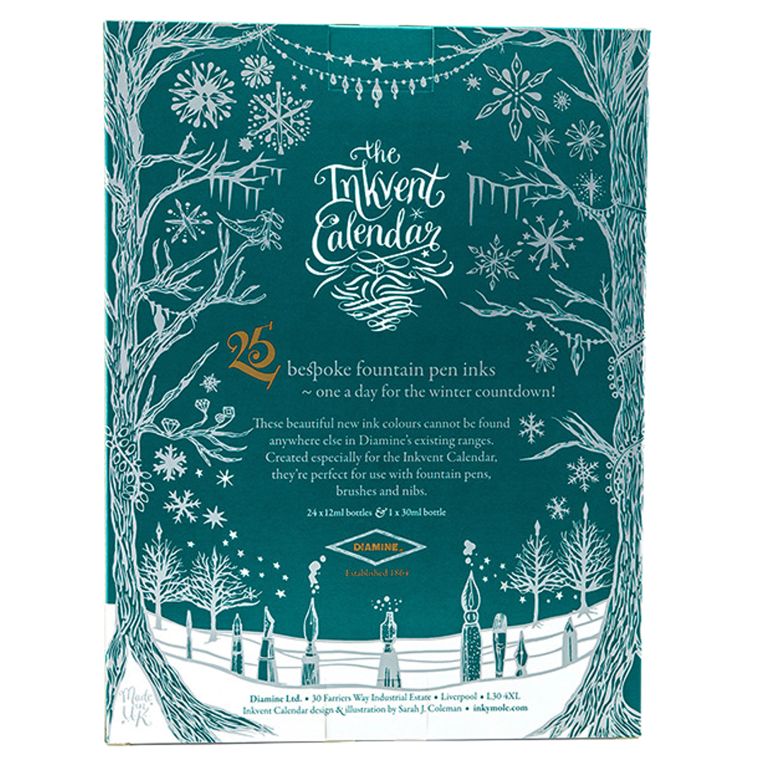 Hver flaske er fyldt med blæk i Diamines karakteristiske kvalitet, vandbaseret, giftfri og kompatibel med alle fyldepenne. Perfekt som gave til blækelskere, kalligrafi og samlere – eller til dig selv. Oplev en ny kreativ nuance hver decemberdag med Diamine Inkvent 2025 – Teal Edition.