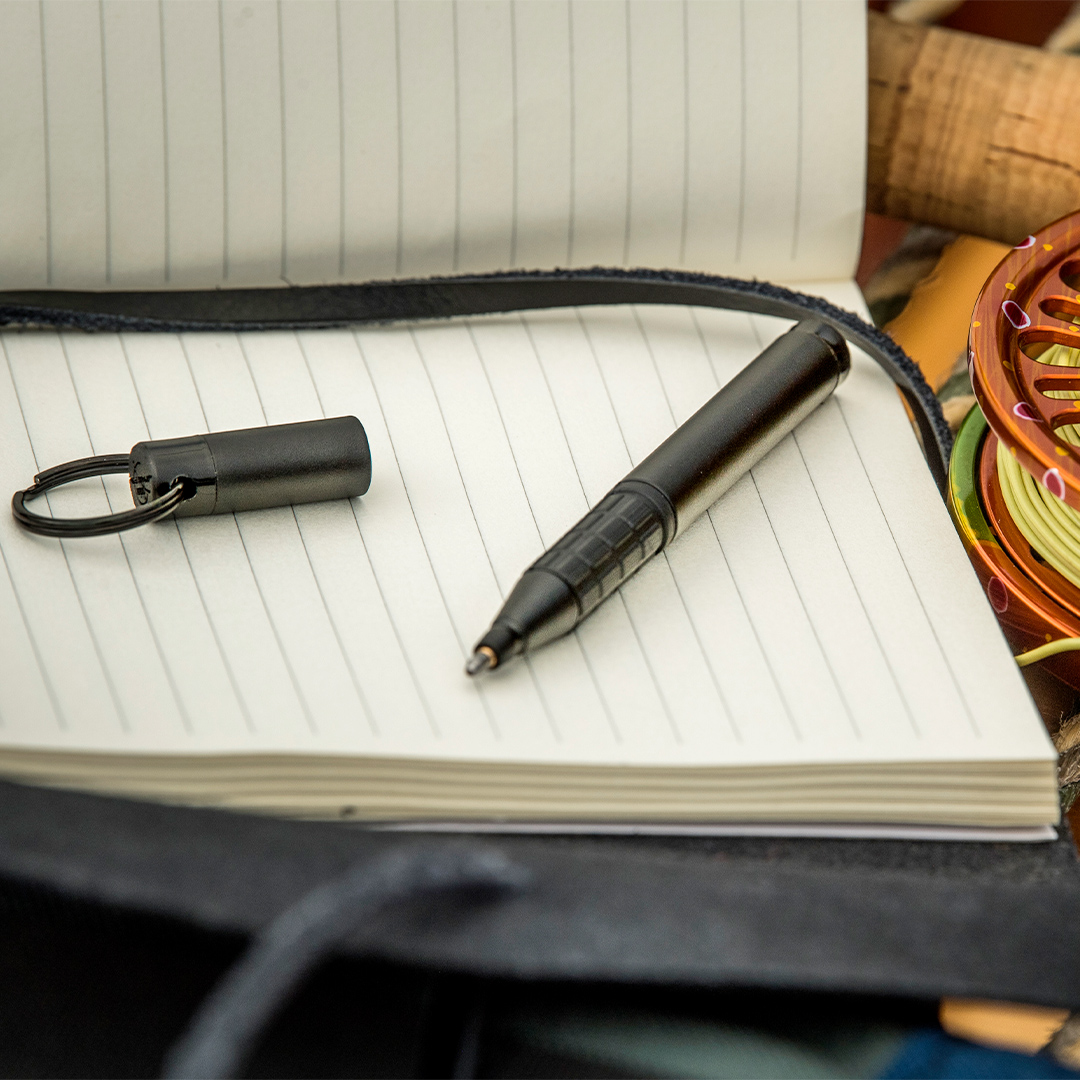 Fisher Space Pen Trekker er en kuglepen helt i metal med gummigreb. Kan genopfyldes med tryksatte refills til Fisher Space Pen. Pennen leveres med en sort medium refill og kommer i en gaveæske.