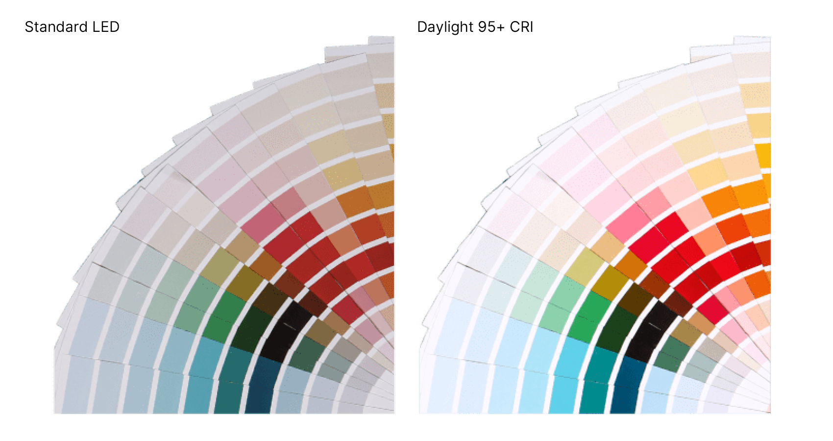 CRI over 90 anses for at være fremragende og bruges ofte i sammenhænge, hvor korrekt farvegengivelse er vigtig. Faggrupper, der ofte investerer i lamper med CRI over 90, er kunstnere, designere, fotografer, tatovører, negleteknikere, makeupartister m.m.