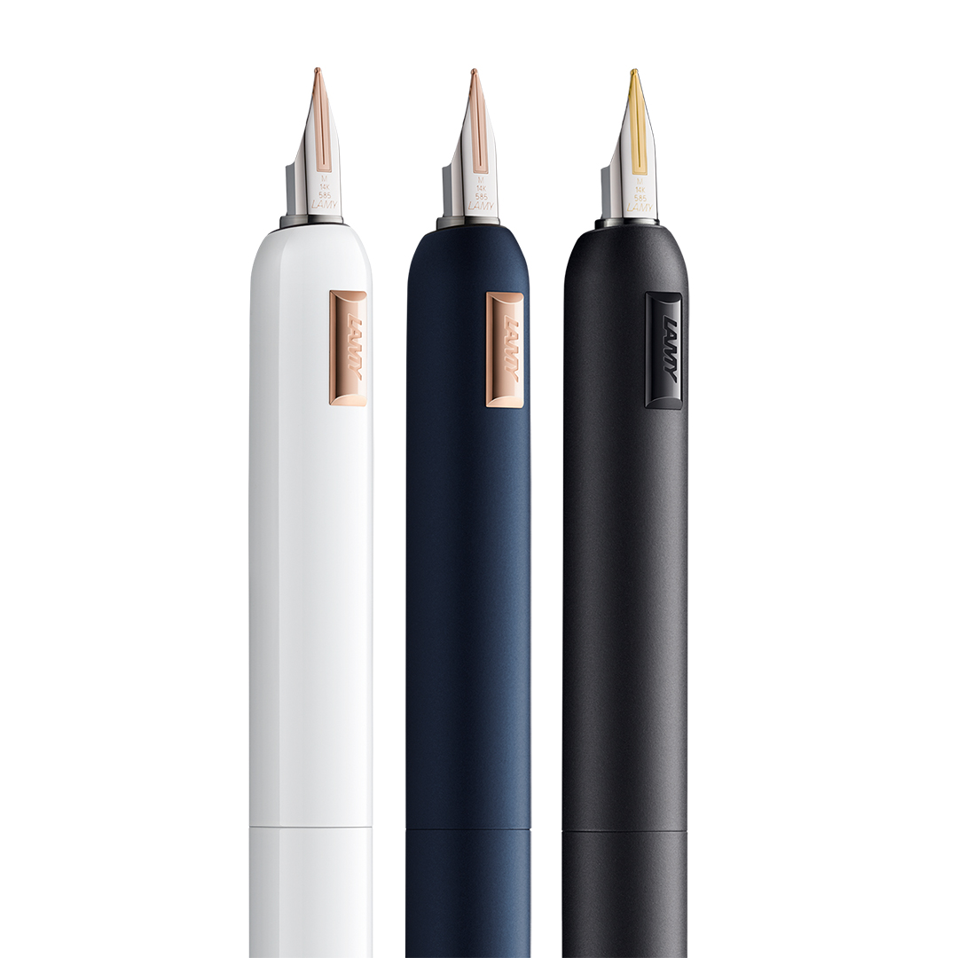 CC’s kompakte pennekrop er udstyret med et diskret LAMY-logo i stedet for et clips, og logoet forhindrer pennen i at rulle på flade overflader.
