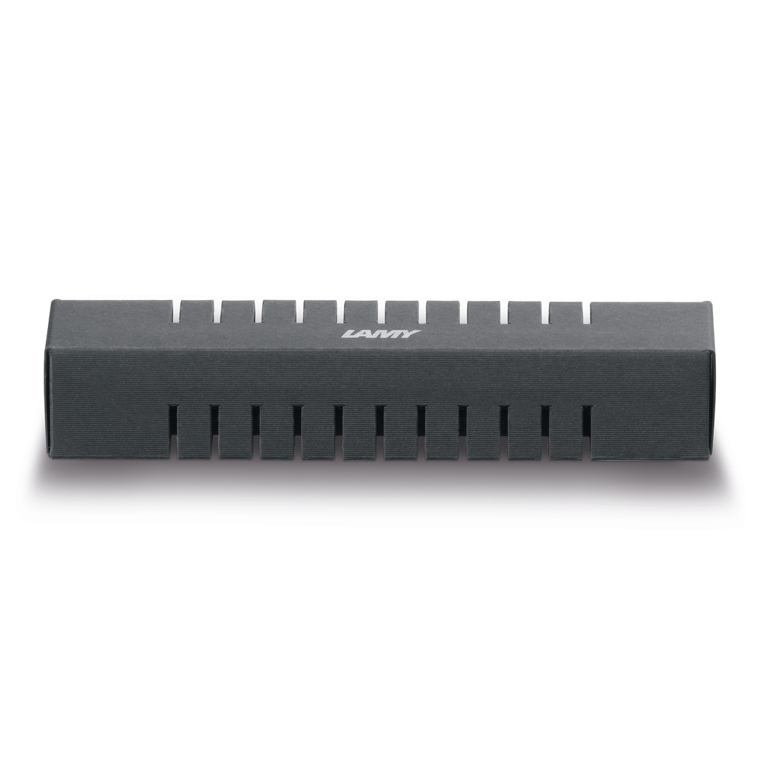 Fyldt med blækpatron Lamy T 10. Vi anbefaler at købe mindst en pakke patroner mere. Kan også fyldes med blæk på flaske ved hjælp af en converter, model Z 28.