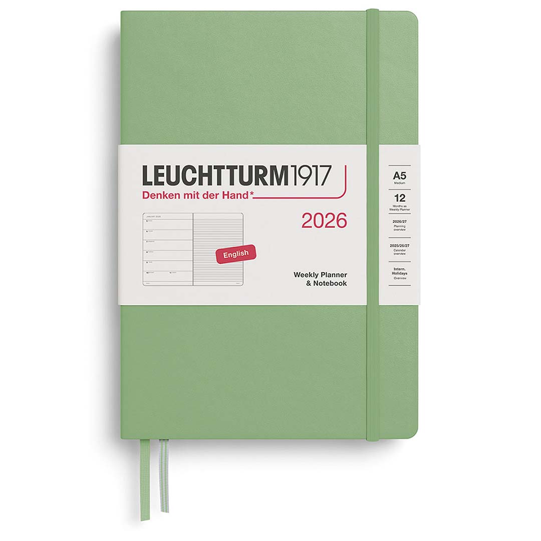 Planlæg dit år med en kalender fra Leuchtturm1917 i A5-format med hård perm. “Weekly Planner and Notebook” har et ugeoverblik på venstre side og plads til noter på højre side. Layoutet giver rigelig plads til planlægning, organisering og noter.