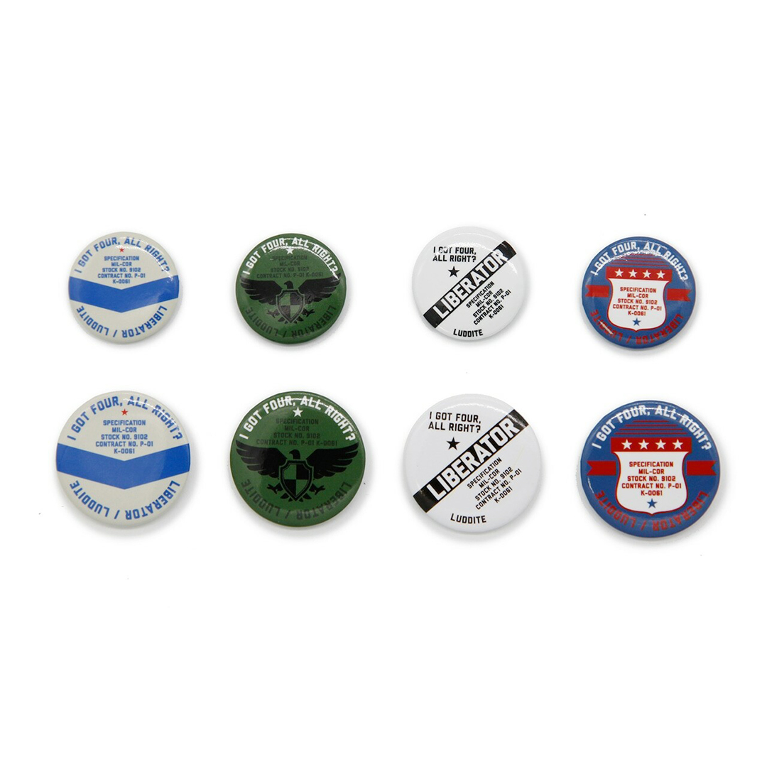 Hvert pennetuie inkluderer et stort og et lille militærinspireret mærke. Den høj-densitets Cordura, der anvendes, sikrer holdbarhed, selv når mærkerne er fastgjort med nål. Mærkernes design er tilfældige og kan ikke vælges.