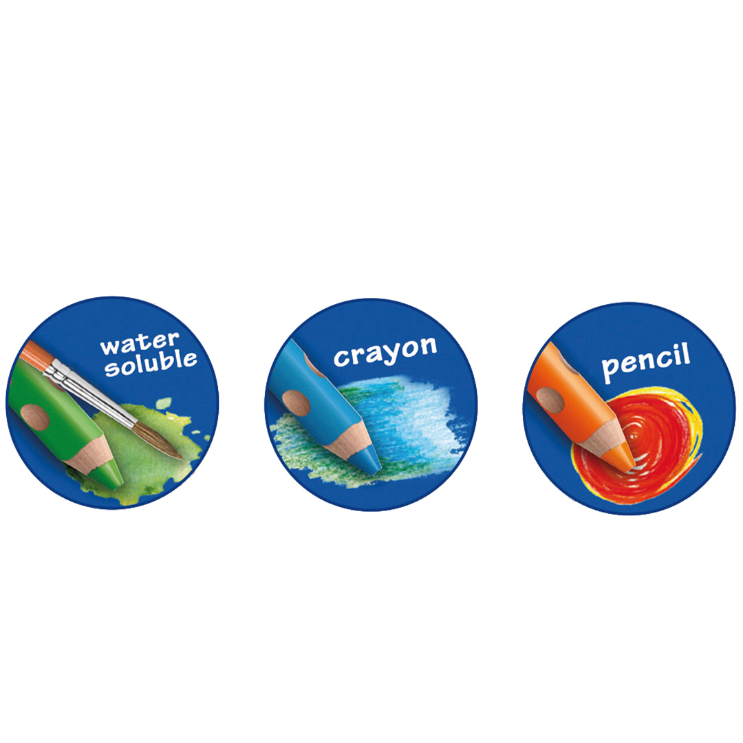 Alt i ét med Groove TripleOne akvarelpen, farveblyant og farveblyant, i klare og ensartede farver. Groove TripleOne er ergonomisk og har naturlige grebzoner. Pennen har en ekstra tyk og slidstærk stift. Den er vandopløselig og let at blande for at få et farverigt og kreativt udtryk. PEFC-certificeret. Længde: 12 cm Diameter: 15 mm Stiftdiameter: 10 mm