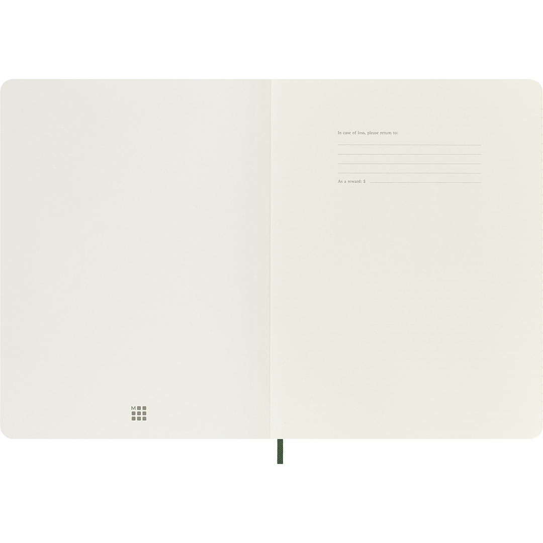 Notatbog med blødt fleksibelt omslag i XL-størrelse (19 x 25 cm) fra italienske Moleskine. Notatbogen indeholder 192 sider og har en udvidelig indvendig lomme samt elastikbånd, der holder bogen lukket, når den ikke bruges. Det elfenbensfargede papir er FSC-certificeret, syrefrit og af høj kvalitet!