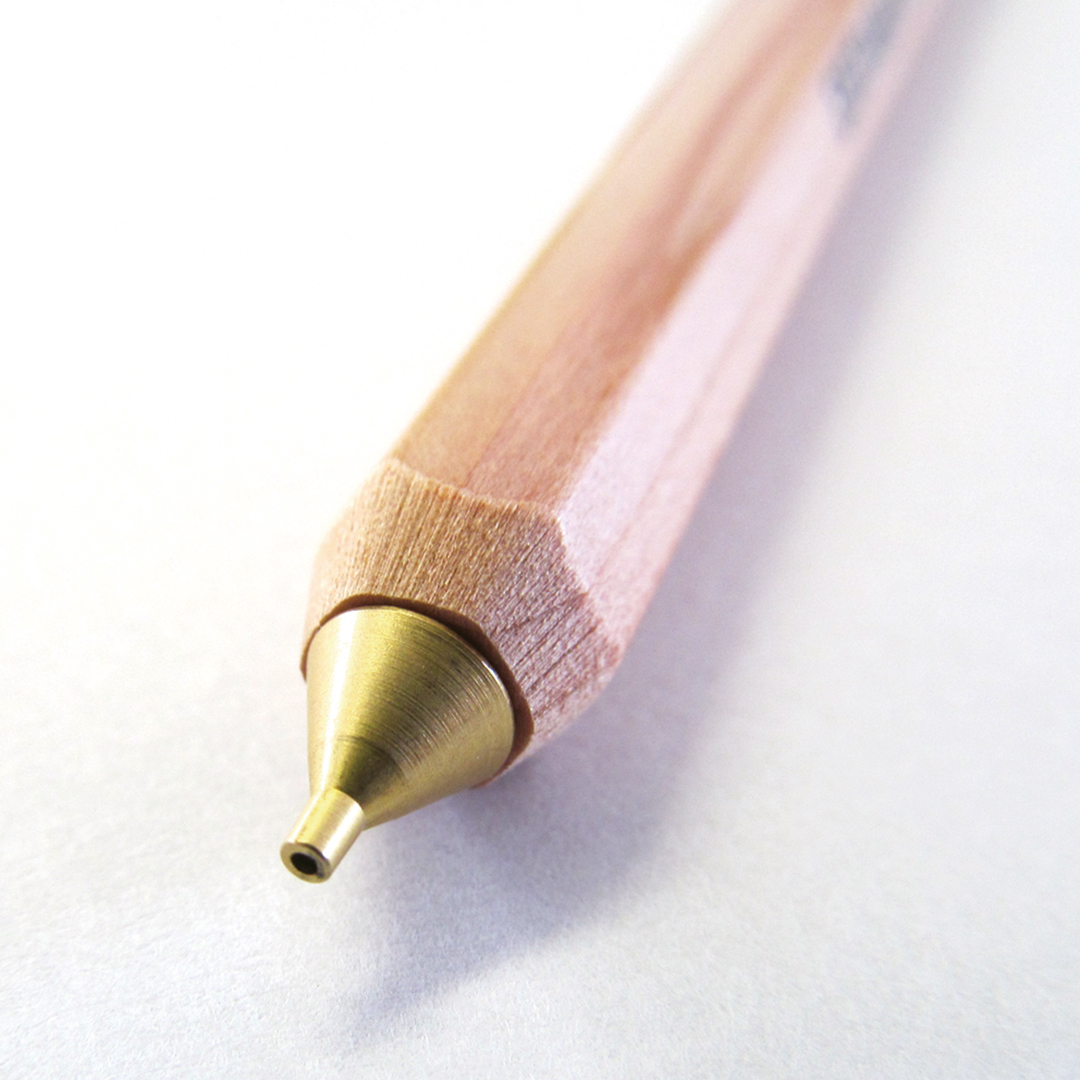 Pennekrop i naturligt cedertræ med satinlakeret finish. Integreret viskelæder. Påfyldning med 0,5 mm blyanter. Fremstillet i Japan.