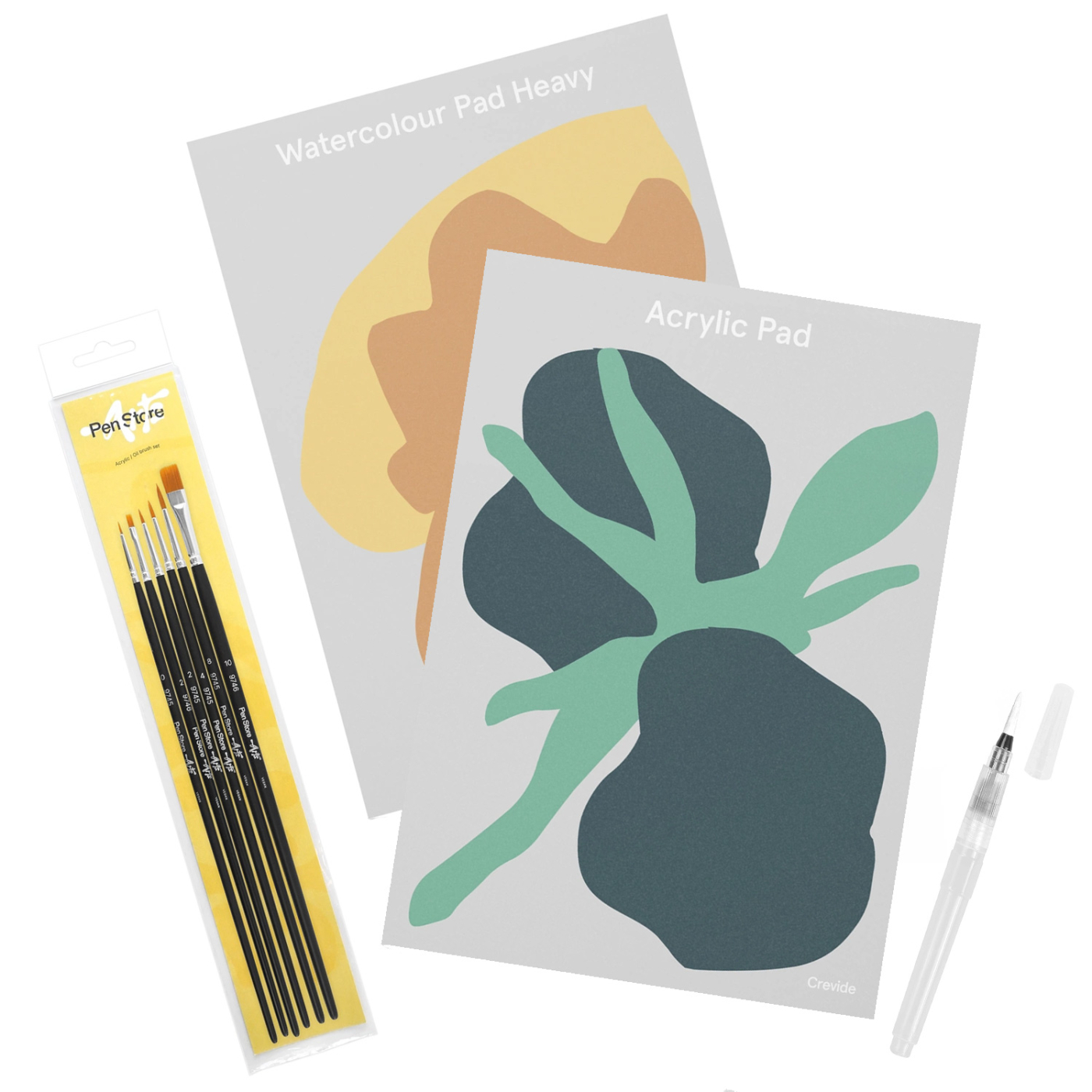 Denne “Creativity Booster” add-on indeholder to A4-blokke, et 6-delt sæt syntetiske pensler samt en genopfyldelig vandpensel.