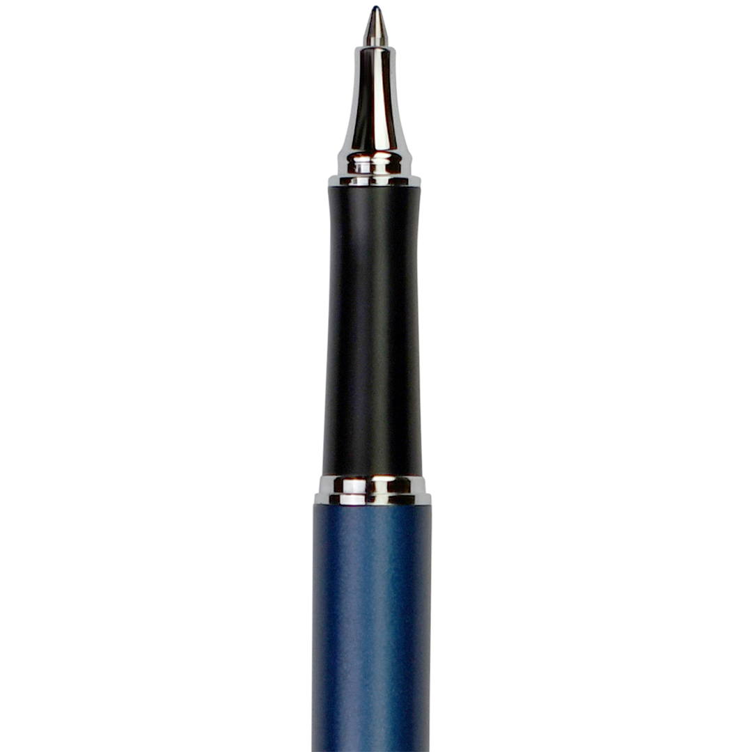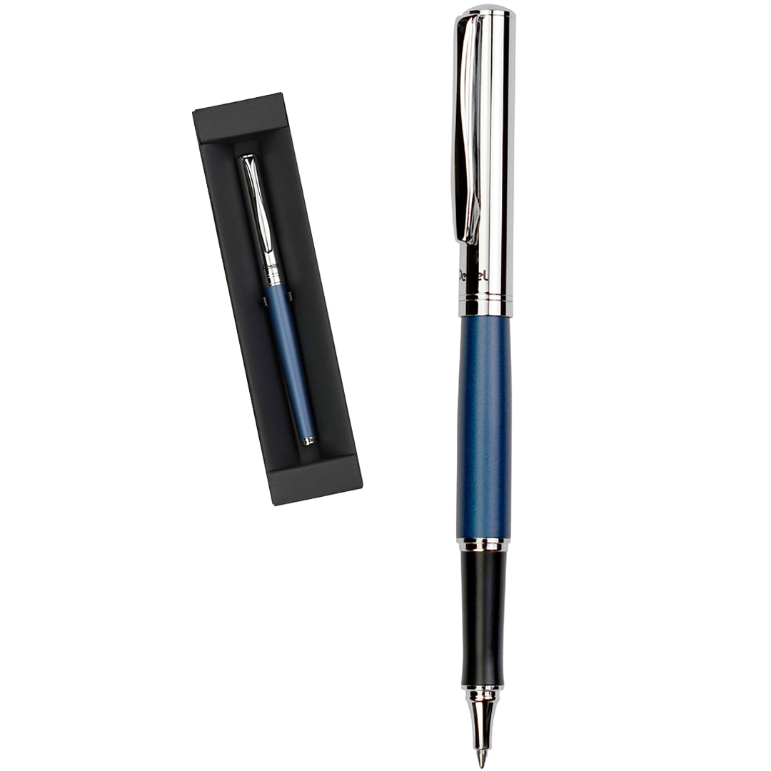 Pennekroppen med eksklusiv blå satinlak kombineres med hætte og detaljer i blank krom, hvilket giver EnerGel Sterling Premium et professionelt og elegant udtryk. Et solidt clip gør det nemt at fastgøre og tage pennen med sig overalt.