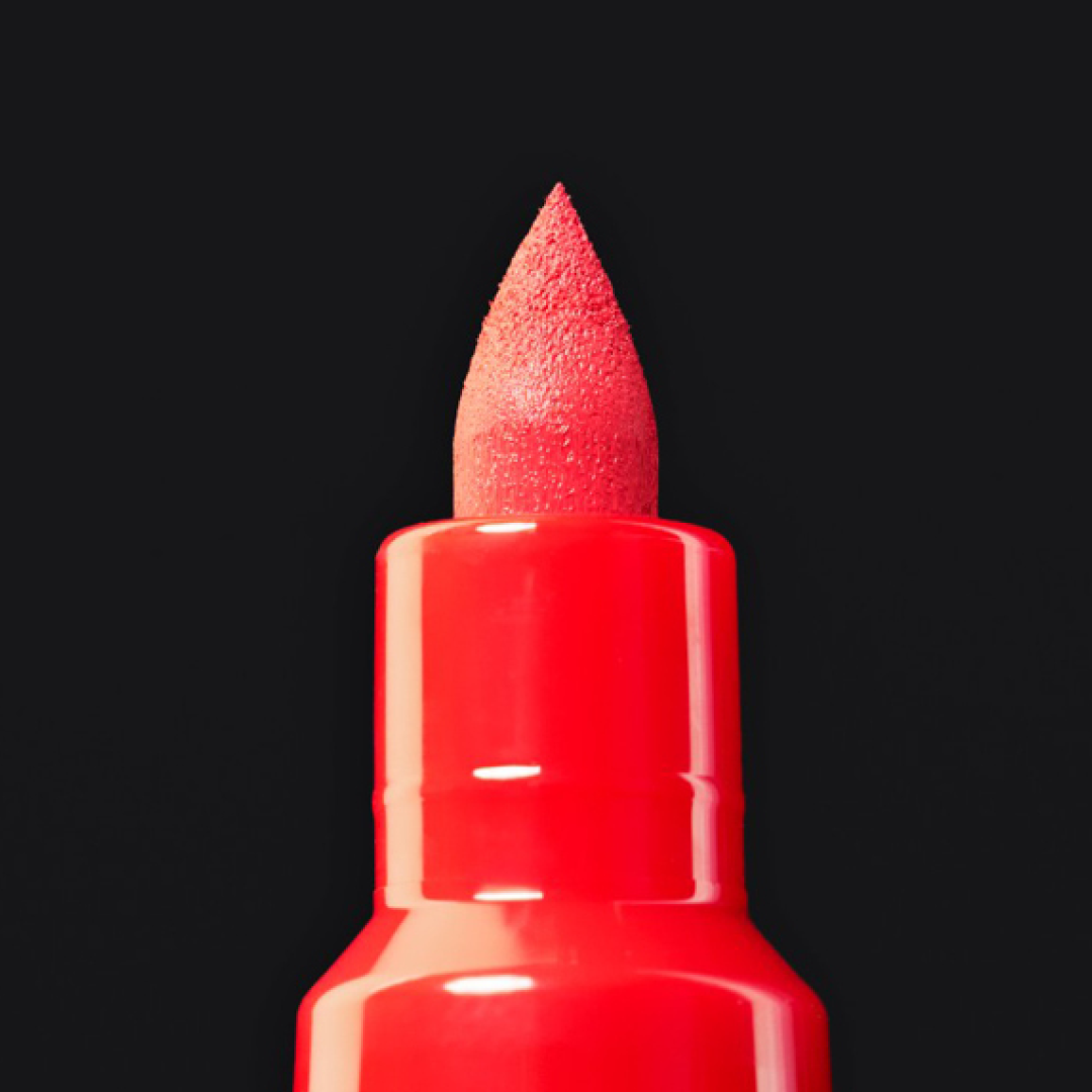 Posca er kendt for at kunne klare hårdt brug med sin holdbare spids, og med Brush bliver den endnu mere alsidig. Penselformen kommer ind i porer, folder og kanter og dækker ujævne overflader som sten, træ og murværk med fuld farve.