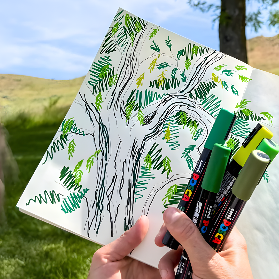 Med den helt nye spids får du det bedste fra to verdener. Spidsen er lige så fast og jævn som en klassisk marker, men samtidig fleksibel på en måde, der giver en mere malende fornemmelse. Det betyder, at Posca ikke kun passer til grafiske udtryk eller street art, men også er et oplagt valg for alle, der kan lide at skitsere, tegne og male mere organisk. Her er nogle eksempler på, hvornår den virkelig kommer til sin ret: