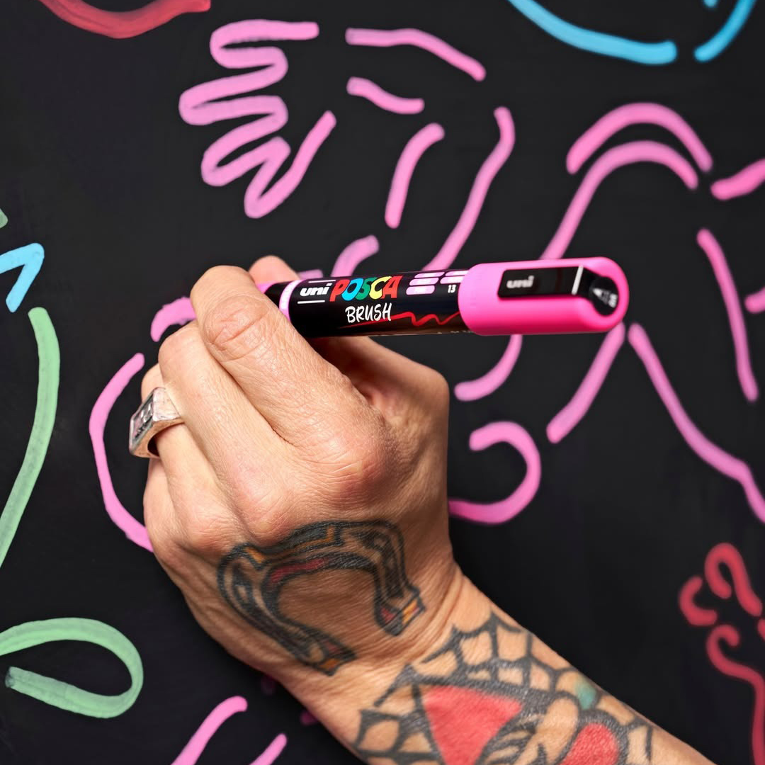 Posca Brush er det nyeste medlem af den ikoniske Posca-familie, en kultfavorit blandt kreative verden over. Fra street art til skoleprojekter, fra professionelle illustratorer til DIY-entusiaster bruges Posca af kreative i alle aldre og stilarter. Med et bredt udvalg af spidser og farver findes der en Posca til enhver idé, og nu altså også med en semifleksibel penselspids!