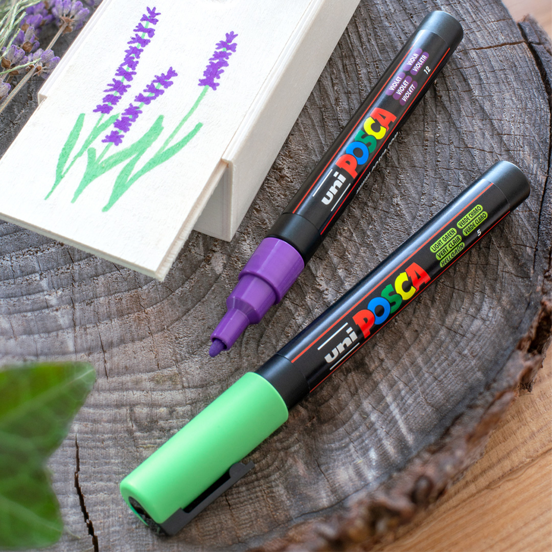 I modsætning til alkoholbaserede markører løber farven ikke igennem papiret og dækker jævnt, uden at blande sig. Posca fungerer fremragende på de fleste underlag, fx sten, glas, metal, træ, plast og stof. Når farven er tørret, er den både vand- og lysbestandig, hvilket gør den perfekt til både indendørs og udendørs brug.