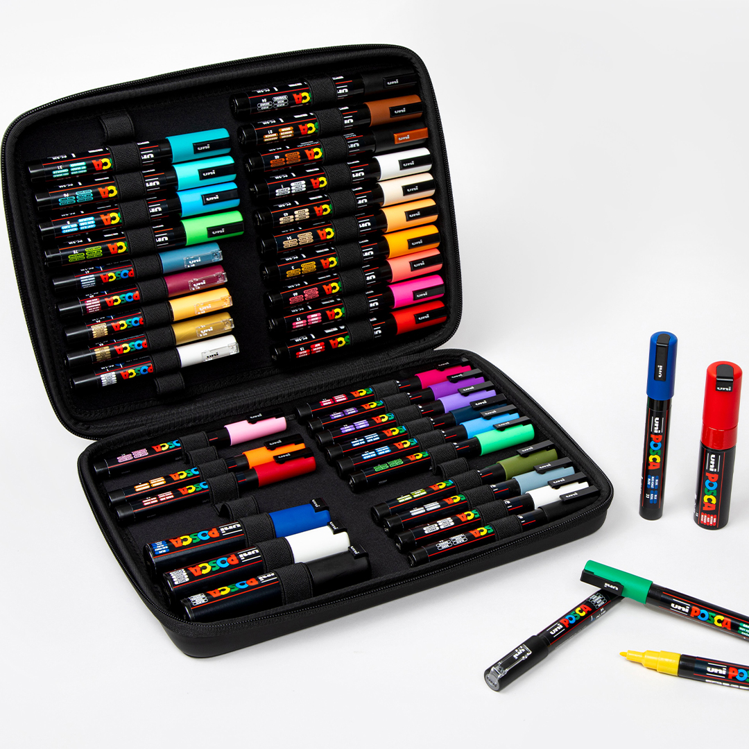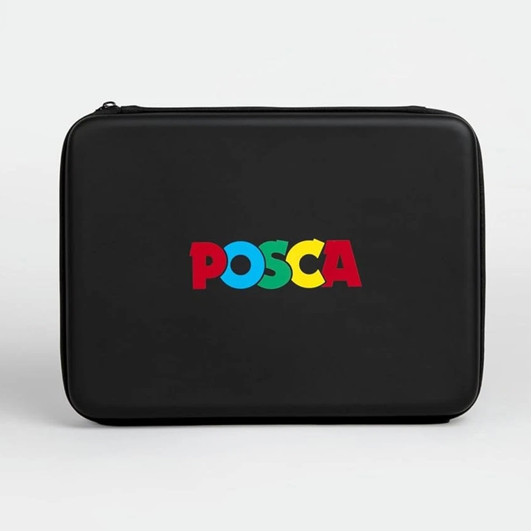 Leveres i et solidt, kvalitetsetui med lynlås. Etuiets yderside er hård og har en gummibelagt overflade med Posca-logo.