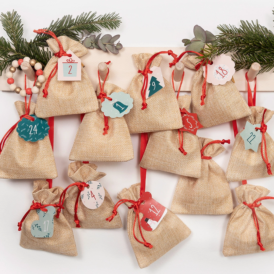 Vi har færdige kits med nummererede låger, der er klar til at blive fyldt med det samme, men også materialer som poser, snore, penne og sakse til dig, der vil skabe din egen fra bunden. Uanset hvad du foretrækker, har vi samlet alt, hvad du skal bruge!