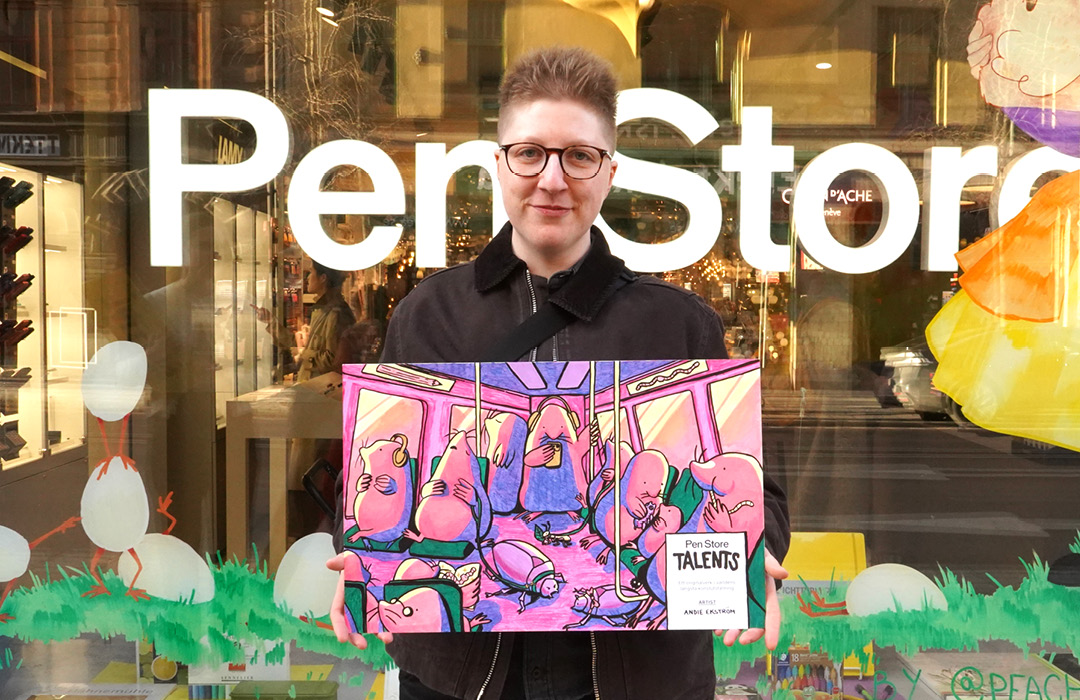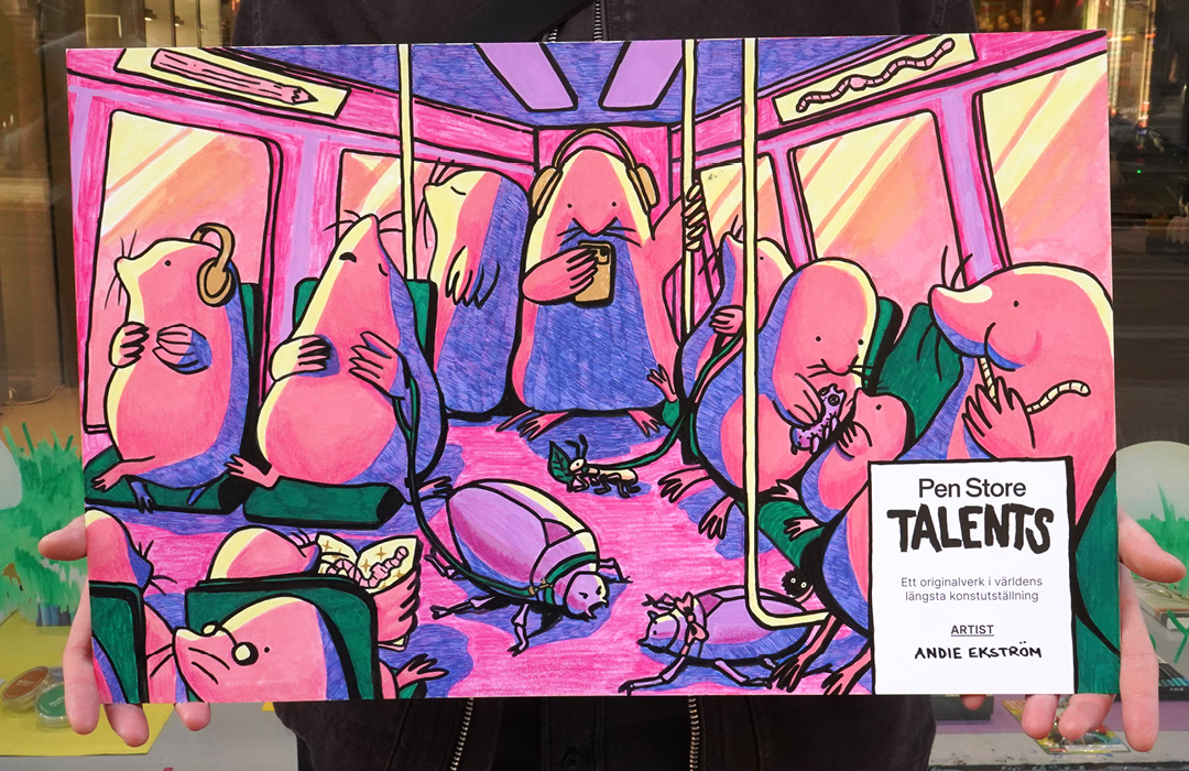 Andie Ekström er en af årets deltagere i Pen Store Talents, en kreativ udfordring hvor du, med otte udvalgte penne og et forudbestemt underlag, skal skabe et originalt værk uden andre værktøjer eller genveje. Årets bidrag bliver desuden en del af verdens længste kunstudstilling, når tusindvis af værker vises i Stockholms metro.