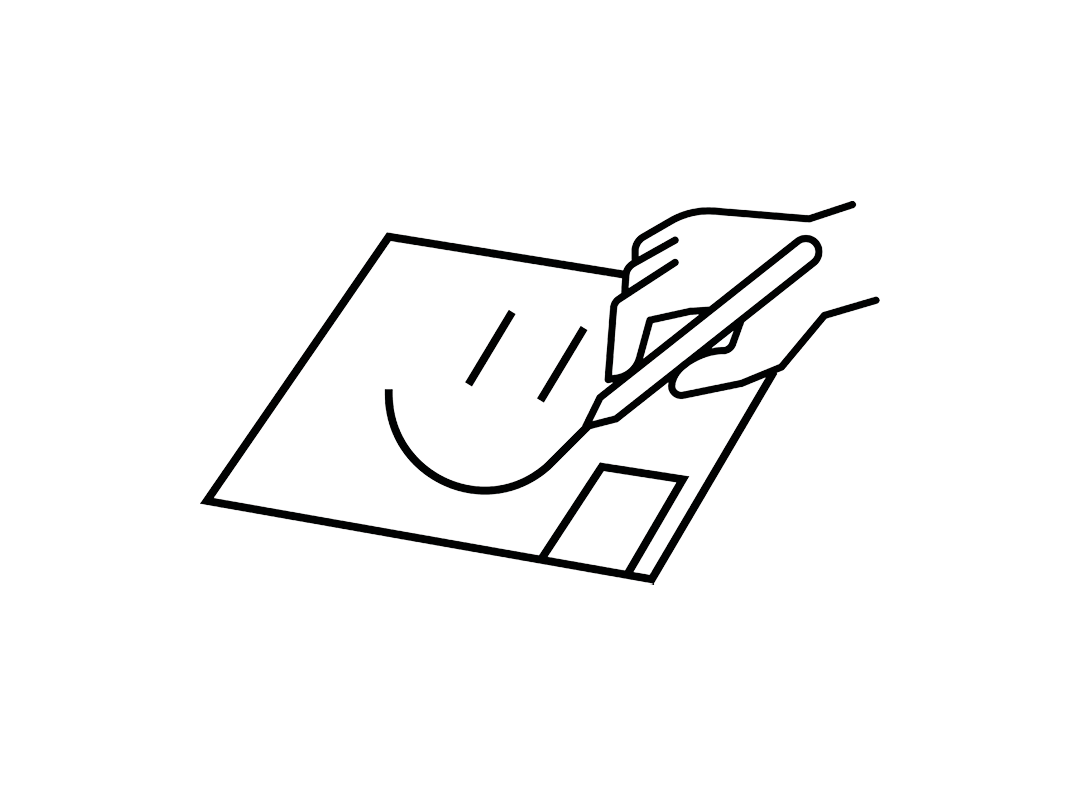 Når du skaber dit værk, skal du bruge alle de penne, du har fået i dit deltagerkit, og du må kun bruge disse penne. Det store hvide ark i dit deltagerkit er det underlag, du skal skabe dit endelige værk på. Den indrammede boks nederst til højre på arket skal forblive tom og må ikke dækkes til.