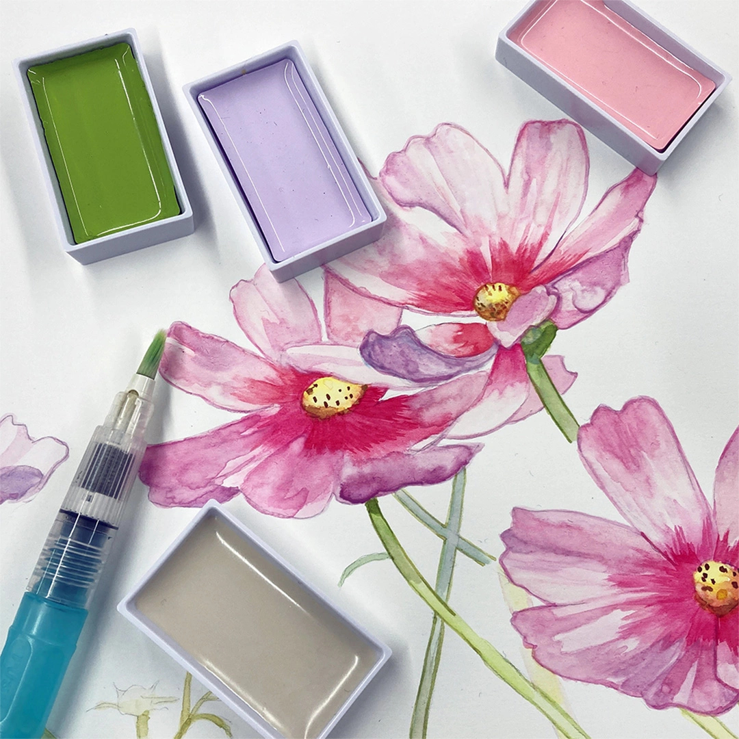 Vandbaserede pigmenter af høj kvalitet blev skabt til at udstråle fra både lyst og mørkt papir, så du kan skabe uendelig akvarelkunst.