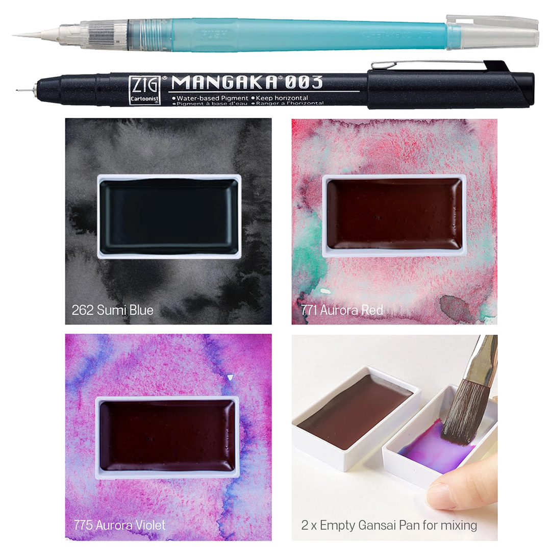 - 2 Gansai Tambi Granulerende farver: Aurora Red (771) / Aurora Violet (775)